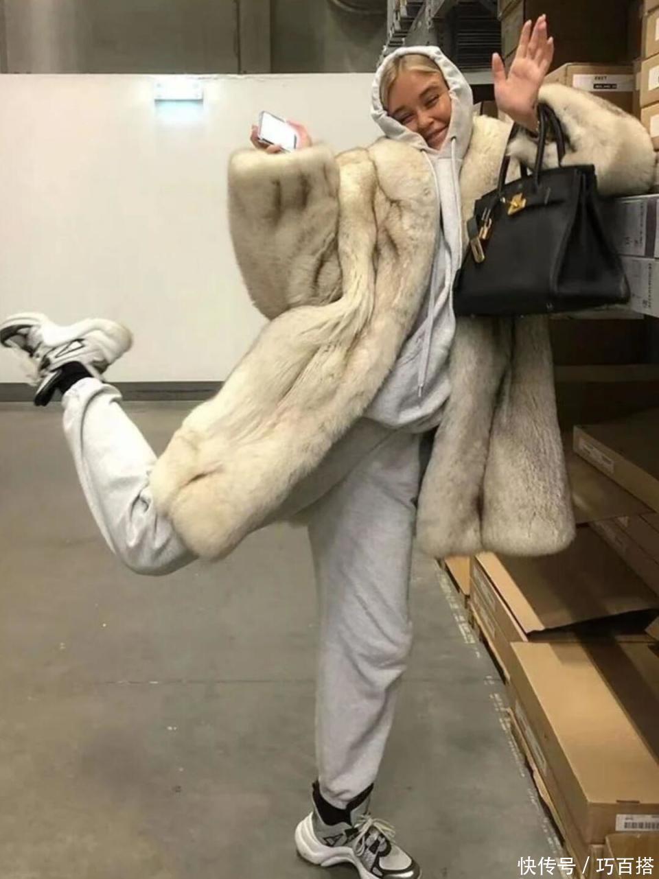 喜欢休闲运动风格的姐妹,可以选择常规圆领卫衣或者常规圆领针织毛衣,无论是相对修身的款式还是绝对宽松的款式,与皮草大衣搭配都不会踩雷,安全感满满。