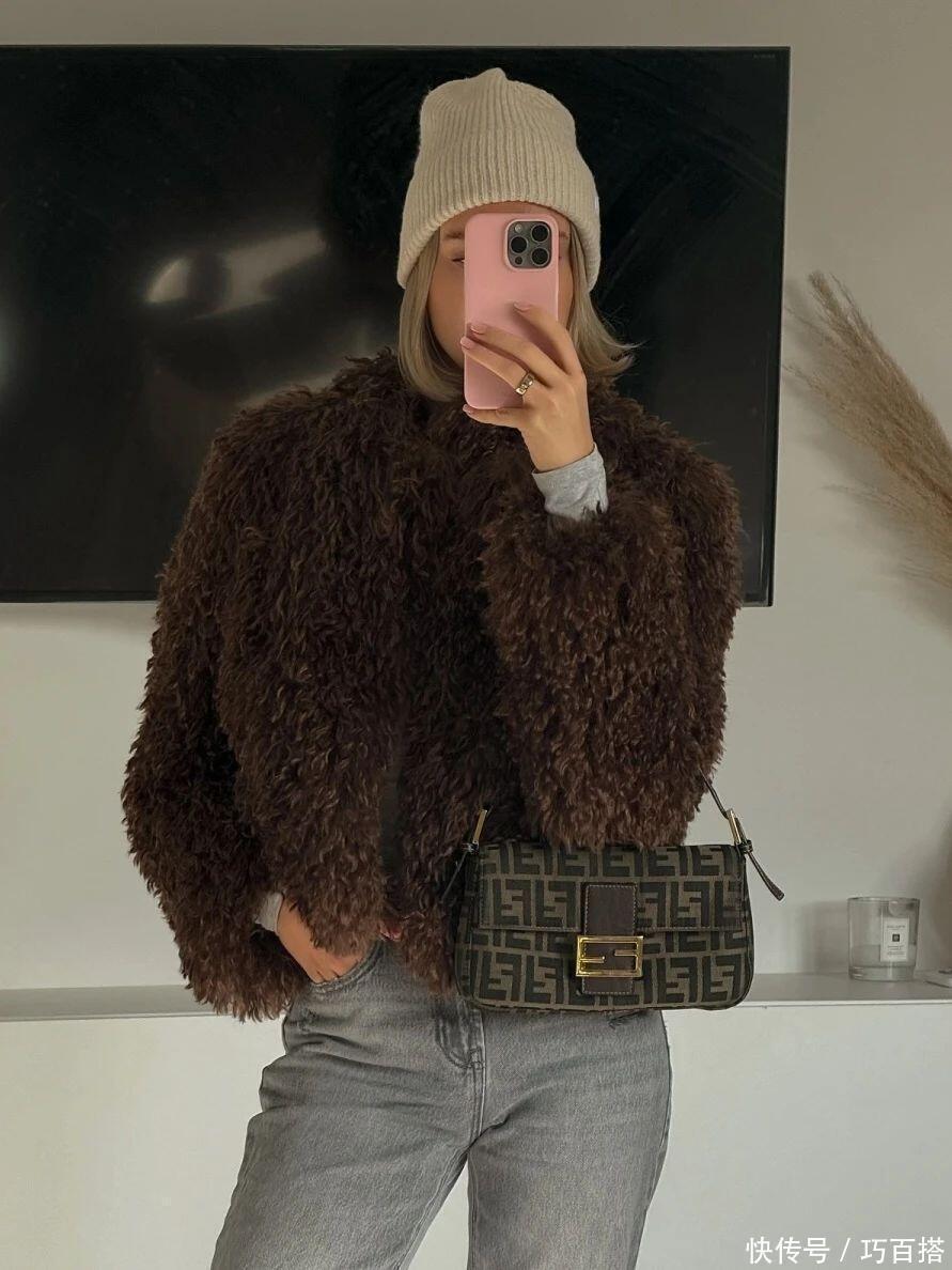 一,皮草配色一定要经典,可以选择博主身上这类渐变色系的款,也可以选择纯白、纯黑或者纯棕、纯咖色的款。